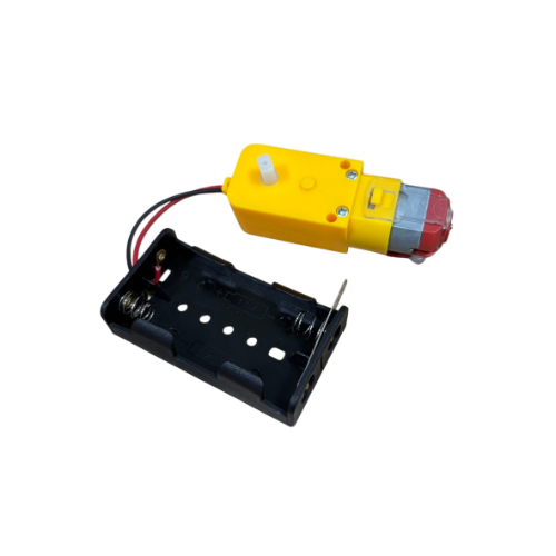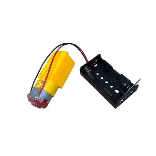 – 130 speed geared motor with AA battery holder and on/off switch.