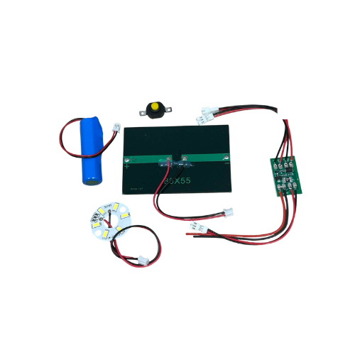 – Charge/discharge control panel with connector wires and silicone wire, approximately 10cm long. The solar panel automatically charges the battery in sunlight and discharges automatically in darkness.
